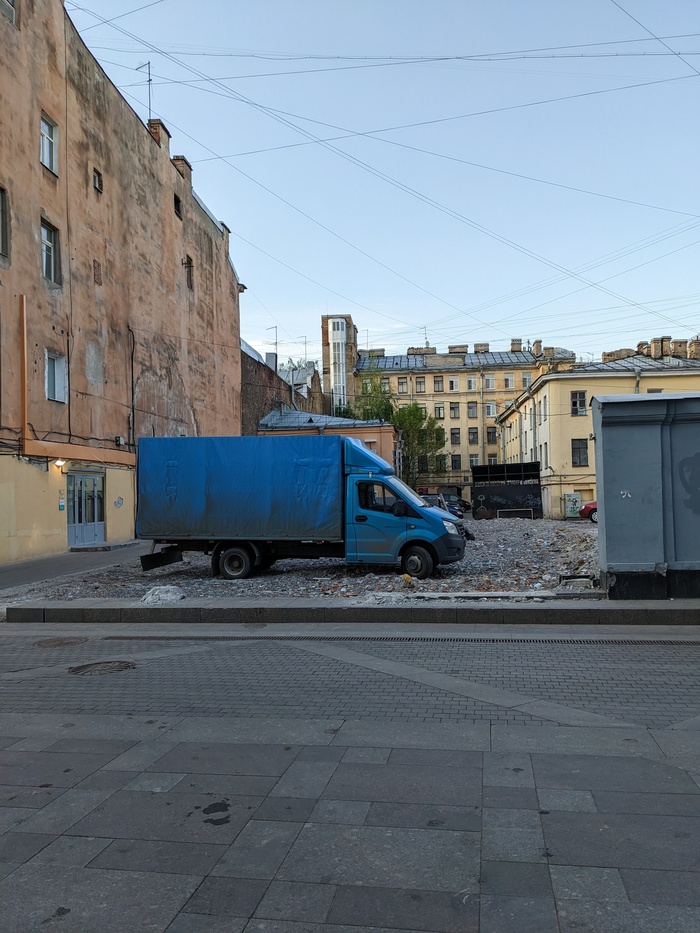 Вот такой красивый отшиб. Раньше тут стояло здание, его снесли и за ним обнажилось вот такое мусорное поле с парковкой.