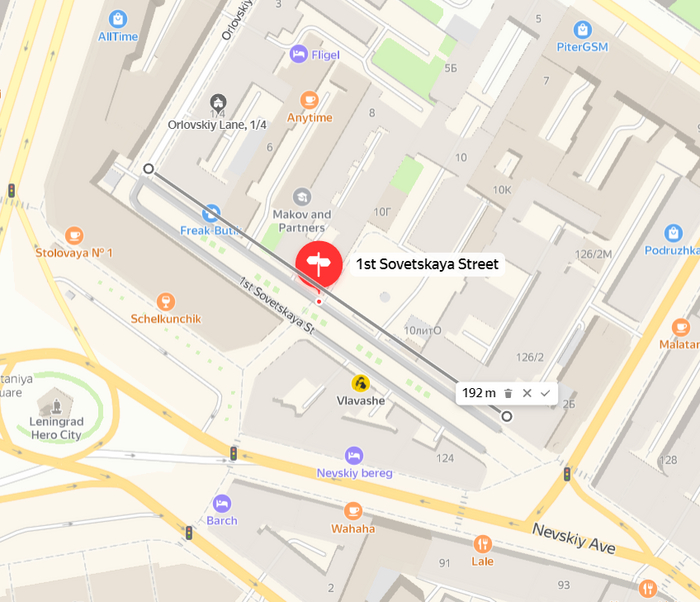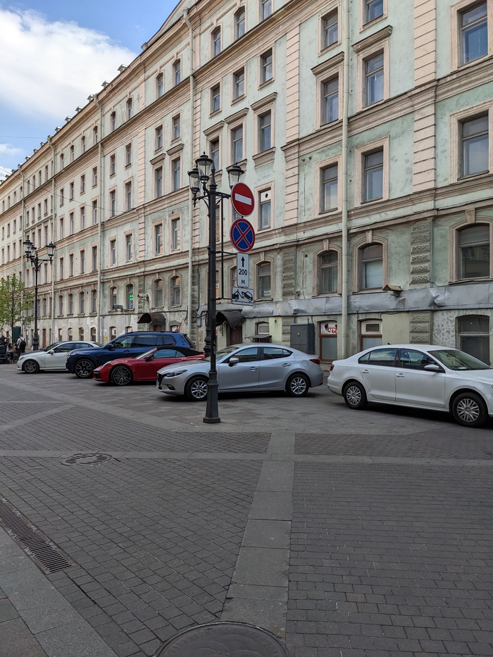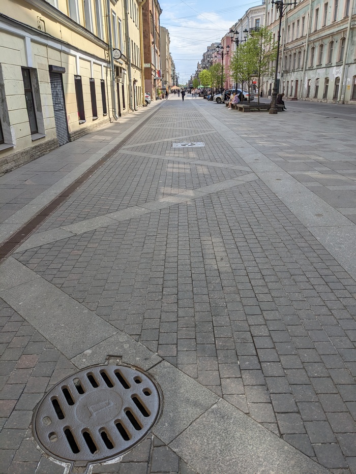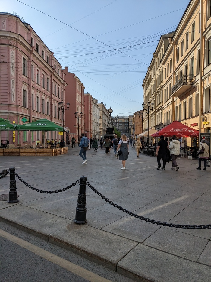 В Петербурге не так много полноценных пешеходных улиц. В центральной части города хватит двух рук, чтобы пересчитать их по пальцам. Но я бы сказал, что в городе всего одна хорошая пешеходная улица - 6 и 7 линии В.О. Если в кратце, то основные критерии пешеходной улицы это: 100% приоритет пешеходов, отсутствие прилегающих дорог к улице, отсутствие парковки автотранспорта, очень редкое движение транспорта (местные, службы или разгрузка товаров), низкий уровень шума, инфраструктура для интересного времяпровождения в виде лавочек, навеса от солнца (деревья и т.д), ощущение безопасности места, плитка/брусчатка на земле. Так как 1-я Советская улица трактуется как пешеходная, то и критика будет в разрезе этого контекста, приступим.