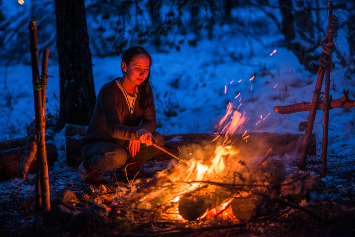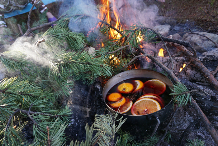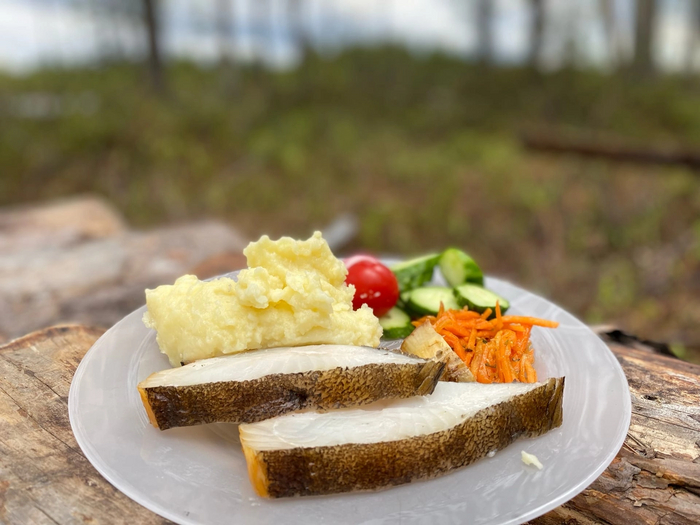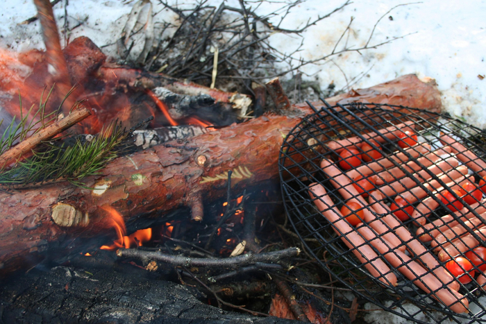 Обед старались делать у костра, сами жарили вредные сосиски, хлебушек и всё такое)