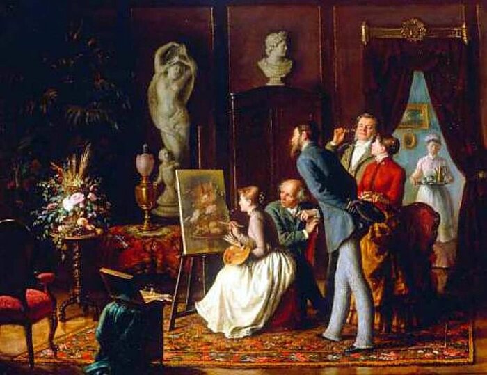 Сергей Иванович Грибков – один из самых ярких и интересных мастеров жанровой живописи. Его картины иногда ироничны, иногда трогательны. Биография его на удивление небогата фактами и укладывается в пару строк: родился в Касимове в семье мелкого торговца в 1822 году, в 22 года поступил в знаменитое Московское училище живописи, ваяния и зодчества, что по меркам художника достаточно, за время учебы имел награды, после выпуска работал на заказ, имел мастерскую и множество учеников. А еще этот художник был просто очень хорошим человеком