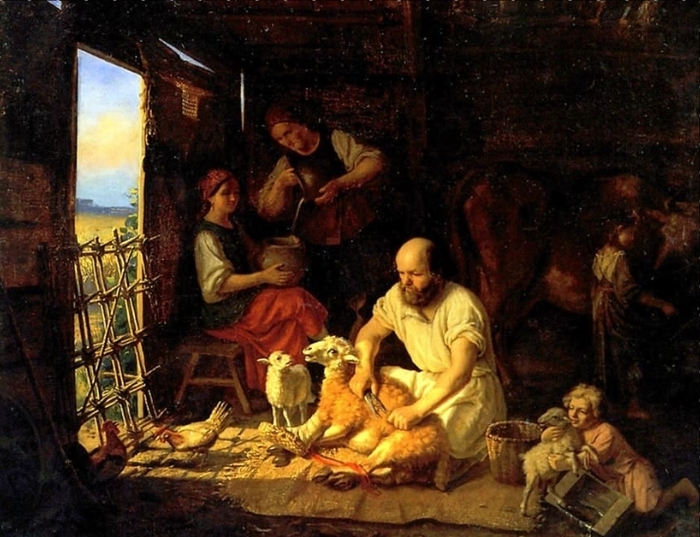 "Крестьянин, стригущий овцу" (1952) Государственная Третьяковская галерея