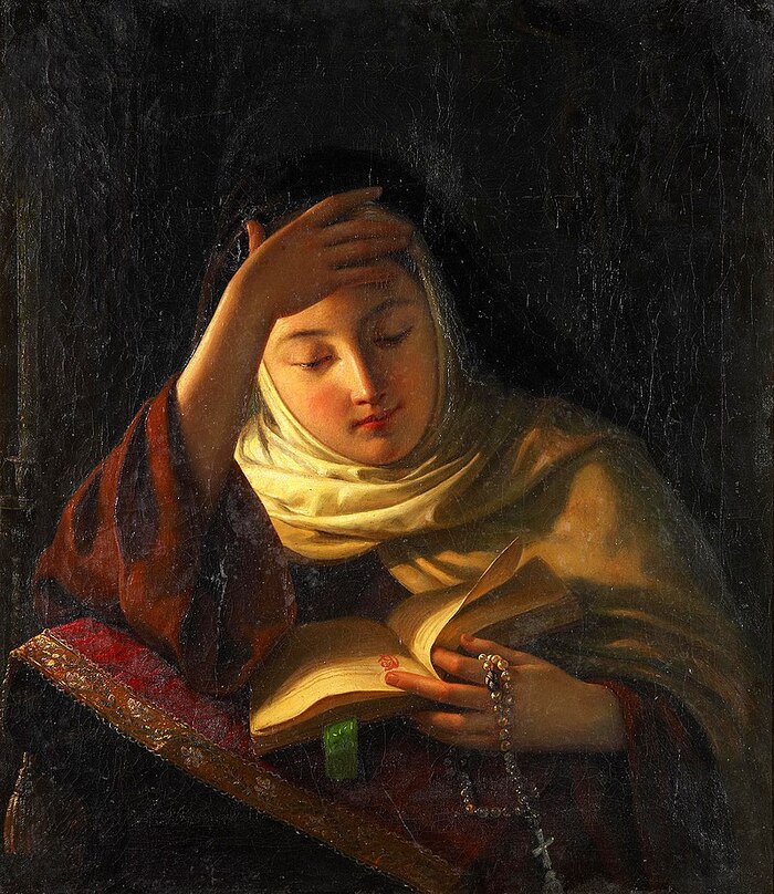 "Молодая монахиня во время молитвы (Молящаяся монахиня)" (1852) Государственный Русский музей