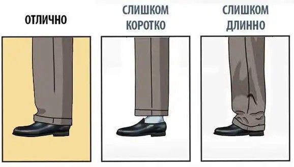 • Не берите черный костюм, берите темно-синий, темно-серый, светлые оттенки синего и серого. • Не носите костюм в клетку. В большинстве случаев вы выберете костюм с плохим узором. Хотите носить клетку? Берите пиджак в сдержанную клетку и однотонные брюки. • Носите костюмы средней зауженности.