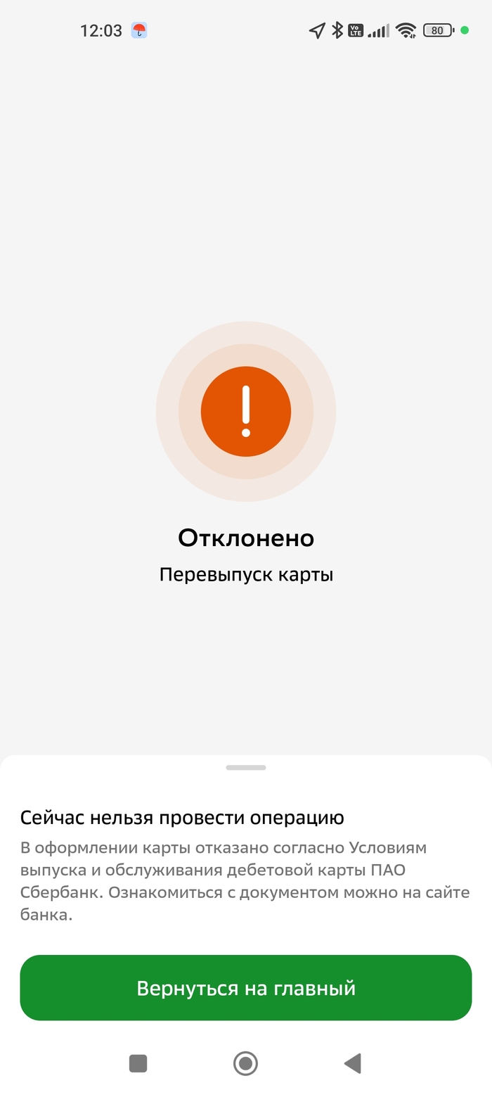 Написал в чат поддержки, мне ответила девушка, что карта заблокирована по подозрению в утечке данных, типа ей могли воспользоваться жулики. Попробуйте выпустить новую, но если вам откажут - подождите 2-3 месяца и попробуйте еще раз.
