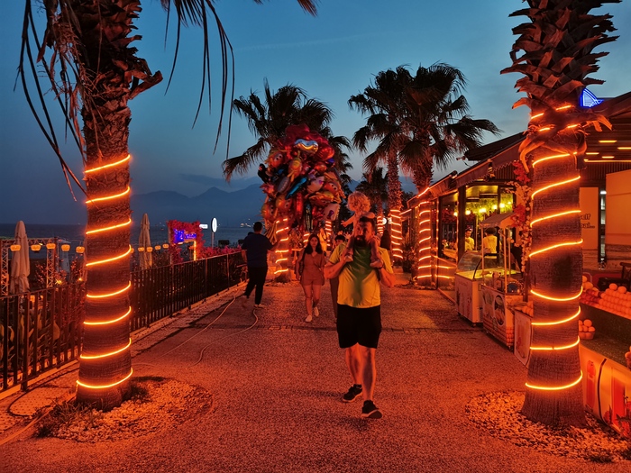 Батя несет дочь, а она развернулась на шарики посмотреть