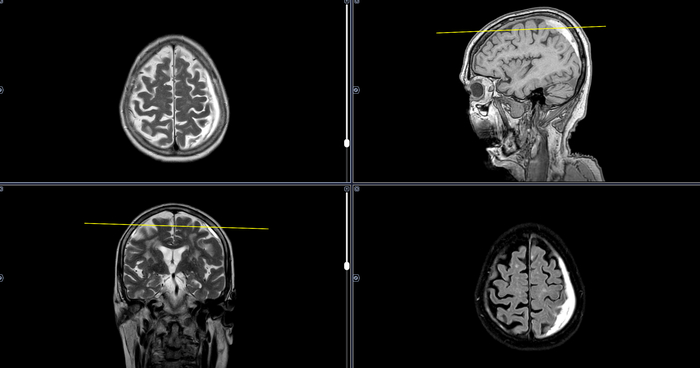МРТ в режиме T2: выраженный гипоинтенсивный сигнал из-за дезоксигемоглобина.