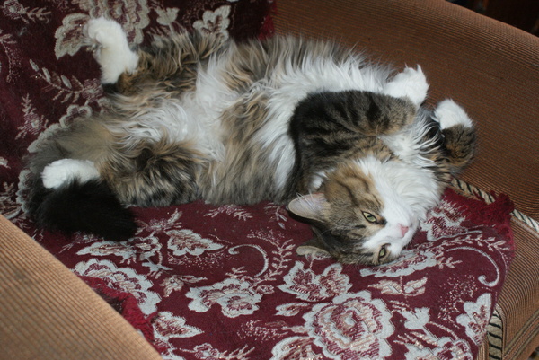 Потом кошка выросла и после стерилизации раздобрела без меры. Пристрастие к сосискам сыграло в этом немалую роль.