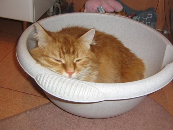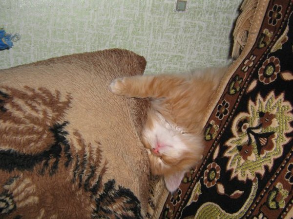 Сначала он вел себя как все котята, играл, кушал, ну и спал, там где секунду назад играл или кушал )))