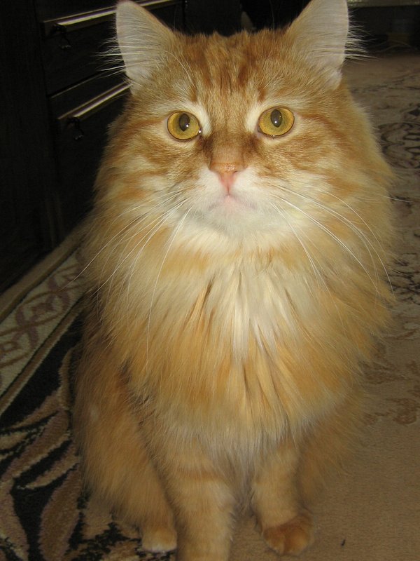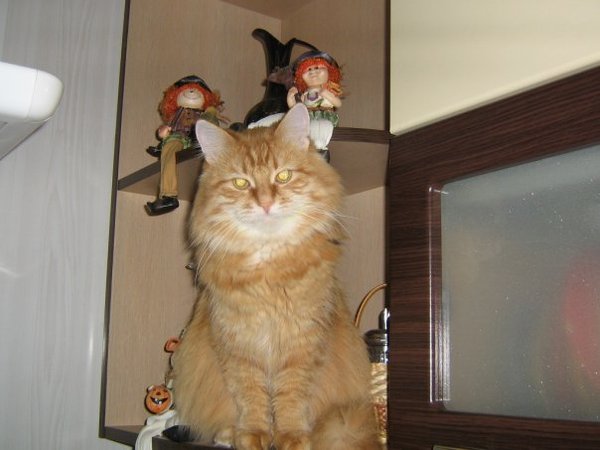 Несмотря на свой трусливый характер и полное отсуствие интеллекта - чертовски красив, чем и пользуется не только дома, но и на даче. Если мы кормим не вкусняшками, то ползает на постой к соседям.