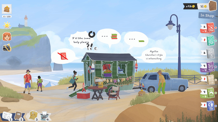Откройте книжный магазин у моря вдали от суеты в этой уютной повествовательной игре и хозяйничайте в нем. Наполняйте его различными книгами и товарами, располагайтесь в живописных местах и торгуйте букинистическими изданиями в уютной обстановке, знакомясь с местными. Украшайте его собранными предметами, выдерживая интерьер в едином стиле или устраивайте творческий хаос. Советуйте читателям подходящие книги и расширяйте их литературный кругозор.
