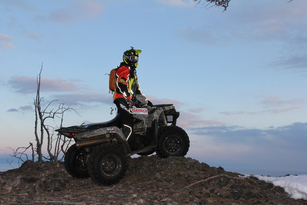 первой же снежной поляне мы умудрились посадить «квадр» на брюхо. А виной всему красота окружавшего нас пейзажа и пьянящий воздух, ведь именно по этим причинам мы, съехав с асфальтированной дороги, забыли включить полный привод. Ну, ничего страшного, откопали «квадр» и рванули куда глаза глядят. Колесили, наверное, часа полтора с холма на холм, меняясь местами, чтобы порулить в тех местах с потрясающим рельефом: это не плоские степи, и мне очень хотелось бы вернуться туда в компании со снегоходом, ну или