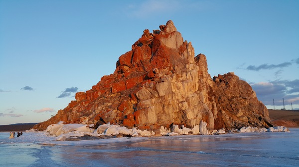Сложно описать те красоты: вам нужно хотя бы раз в жизни увидеть это собственными глазами! Вот только не стоит делать этого без присмотра ледового капитана. Что и подтвердилось в первый же день, когда Дима дал нам в проводники своего помощника Эмиля и наказал ему показать нам местную «попсовую» достопримечательность, скалу Шаманка, что возвышается на побережье Байкала, маня к себе свадьбы и толпы туристов. Сам Дима в этот момент занялся подготовкой нашего ночлега на льду Байкала.