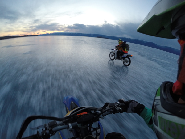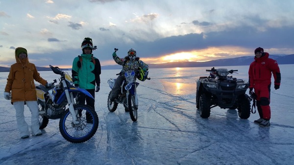 что решение о маршруте по льду отменялось несколько раз из-за аномально теплой погоды в канун нашего визита. Пару раз даже вставал вопрос об отмене самого фестиваля из-за состояния льда. Однако, подготовив технику (а это два эндуро-мотоцикла, квадроцикл и все