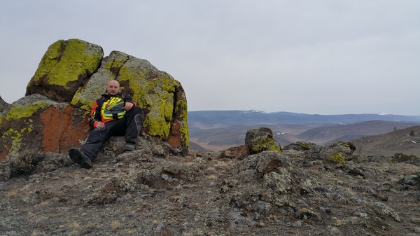 Спустившись, выдвинулись к месту ночлега, так как уже смеркалось. Хочу отметить, что в плане проживания есть варианты с комфортом и даже завтраком. Номер на двоих обойдется вам в районе 2000–3000 рублей за ночь с удобствами. В барах-ресторанах при гостиничных комплексах вполне себе коммунизм, если сравнивать с Москвой. Бронировать номера нужно заранее, так как, полагаю, в сезон мест может и не быть. Утром мы продолжили наше путешествие по степям. Дима обещал нам показать древние наскальные рисунки. Машины двигались по дороге, а мы на квадроцикле залезли повыше, чтобы больше увидеть. По пути следования машин было множество соляных озер, весной они служат этакой транзитной точкой для большого числа перелетных птиц. К сожалению, наскальной живописи было достаточно мало: увы, время по отношению к ней беспощадно. Однако, Дима
