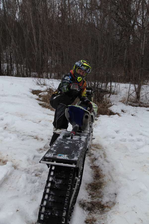 замерзшей реке, и вдруг она ныряет в каньон. Ты продолжаешь петлять по льду, озираясь то влево, то вправо на стены каньона до тех пор, пока за поворотом не появляется залитая солнцем ледяная долина, ослепляющая голубыми лучами, отражающимися в застывшей реке. В такие моменты в легких спирает воздух, а сердце начинает стучать быстрее, будто хочет про запас насладиться кислородом из здешнего воздуха. Вот так, наслаждаясь красотами, постепенно, плавно мы поднялись до места, откуда ни машины, ни «квадр», ни маломощные SL и WR далее пройти не смогут. Отсюда и начинался местный ледовый «хард- эндуро-спот». Будто вы в горах Крыма, вот только вместо почвы и камней у вас под колесами голубой лед. Место действительно уникальное: вы поднимаетесь вверх по порогам, которые местами достигают двух-трех метров, кое-где натыкаетесь на камни, останавливаетесь, ищете траекторию, опять едете, падаете, встаете, — и все по новой. При преодолении очередной серии порогов, азарт шепчет: «Давай дальше!» — однако в этом месте нужно четко понимать, где заканчивается «фан» и начинается «пи…ец», ибо убраться тут можно на раз-два. Со слов Димы, до нас в этом месте побывало менее десятка человек, из них шесть райдеров. Стандартному, заводскому шипу там очень тяжело, — ощутил на себе. Везде нужно отточенное движение «внатяг»: малейший срыв