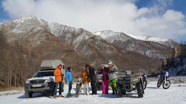 выдвинулись в сторону Тункинской долины. Говорят, летом там жутко красиво! В этом районе нас ждали термальные источники и снег, для того, чтобы наконец стряхнуть сноубайк с прицепа и взорвать девственные остатки снежной целины. А основной точкой нашего маршрута была река Белый Иркут и ее каскад ледопадов Мугувек. Расстояния на Байкале достаточно большие, просторы позволяют ехать долго и вдумчиво. Выехав из