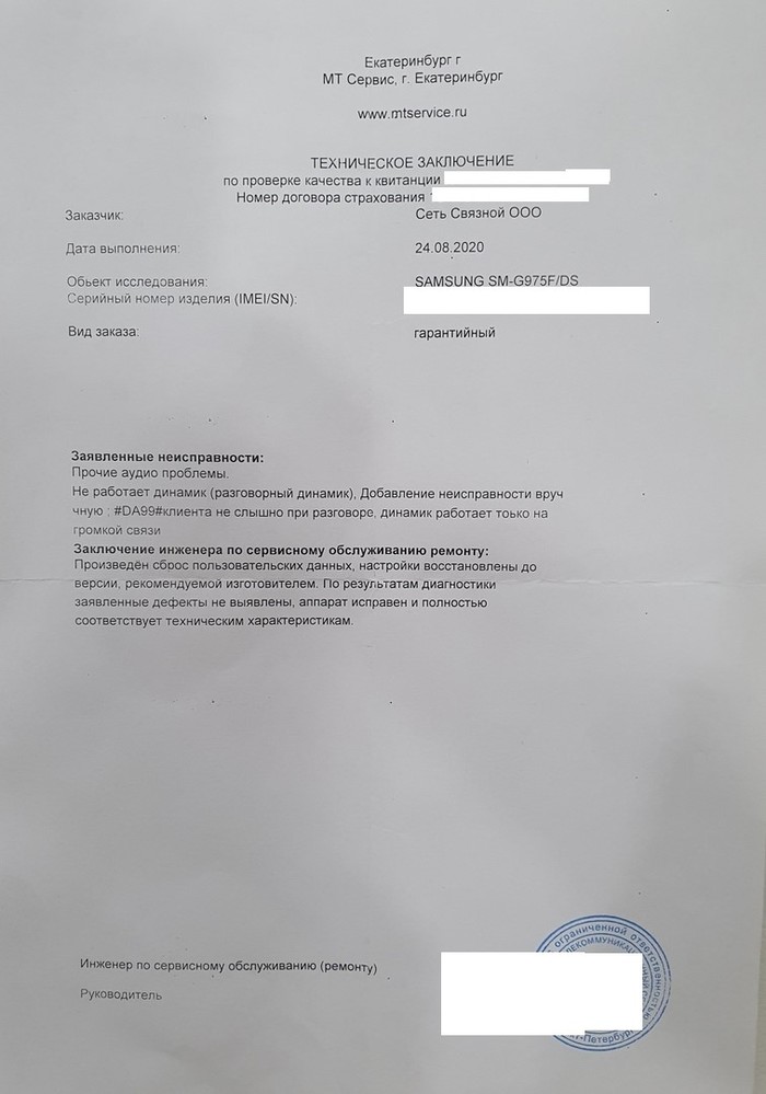 Получив отписку от связного, я направился в единственный авторизированный центр Samsung в городе Новый Уренгой, чтобы установить неисправность, получить какое-то решение и спокойно жить дальше. Фактически, я настолько отчаялся, что был готов отремонтировать телефон за собственные средства, так как он мне активно нужен в работе. С первого раза не получилось. Вернули со словами исправен.
