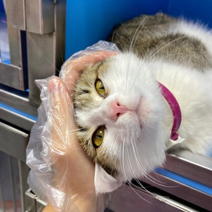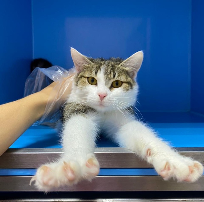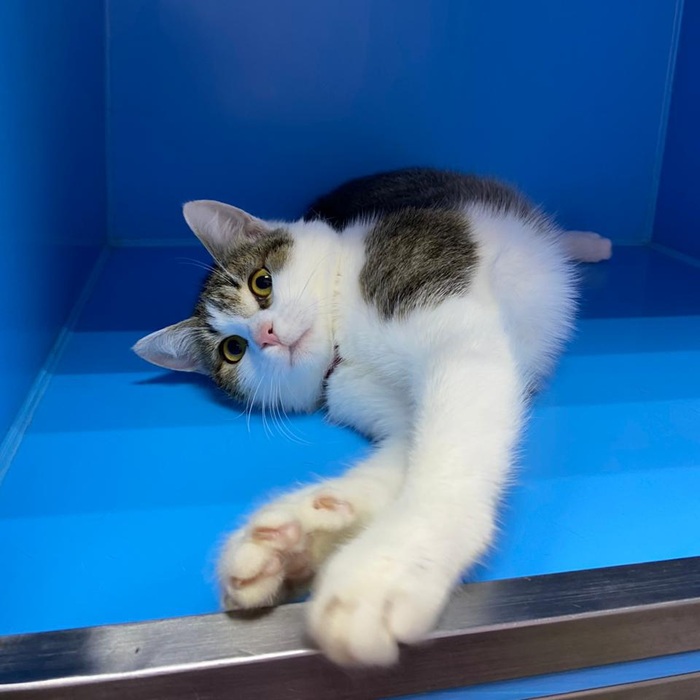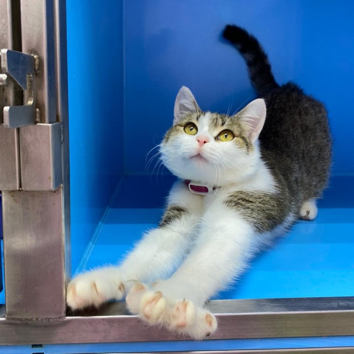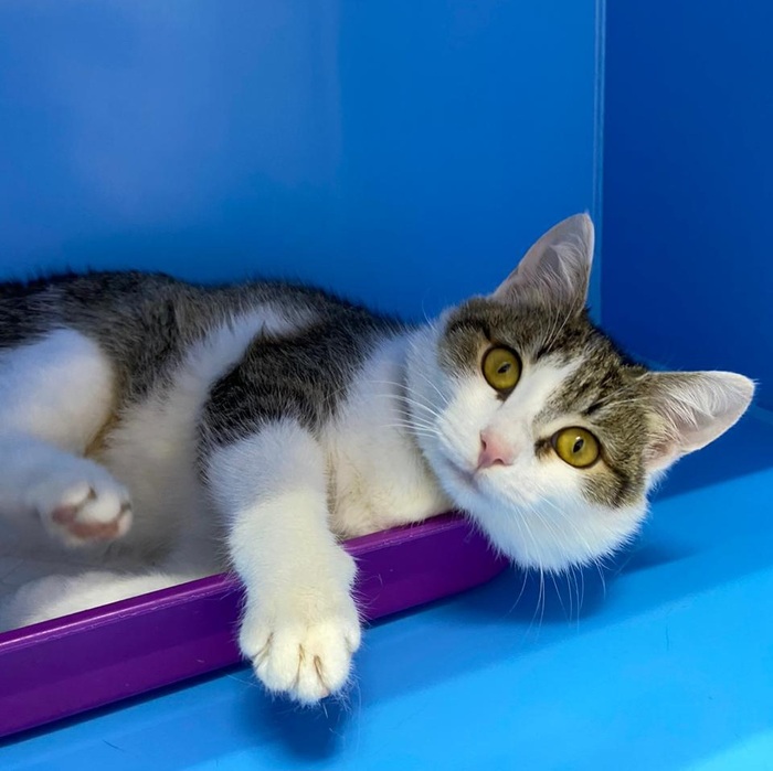 Если Вы приедете к нему, Вас наверняка смутит женское имя Адель, которым подписан бокс. Все верно, ошибки тут нет: просто привезшие почему-то посчитали его кошкой) А на самом деле кот.