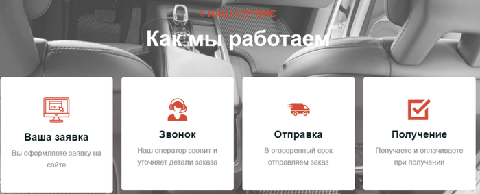 А стоило бы написать: уточняем модель авто → учитываем ваши пожелания по цвету, окантовке и строчкам → шьем индивидуально под вас → отправляем.