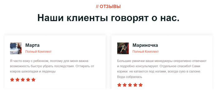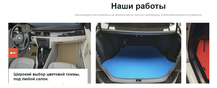 На первом экране заявлено: «Индивидуальный пошив под Ваше авто». А здесь о пошиве нигде не сказано. Это блок обезличен, его легко можно поставить, например, на сайт с детскими игрушками или флешками.