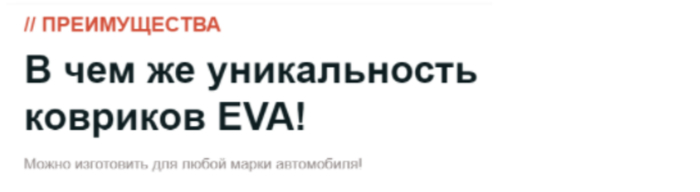 А если коврики отличаются от изделий конкурентов, то акцент надо ставить не на уникальности ковриков EVA, а на «Уникальности ковриков EVA нашего производства». То есть: