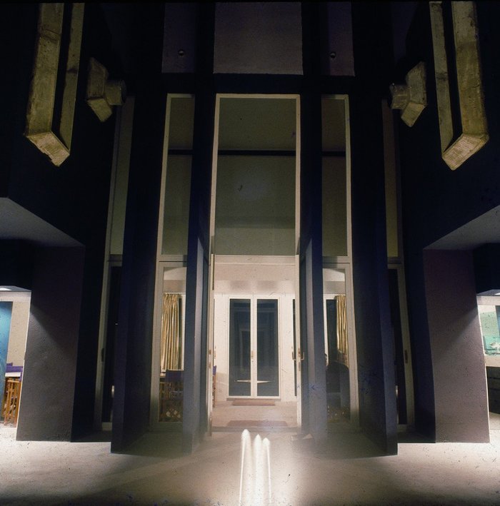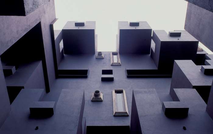 Название, данное в честь произведения Франца Кафки, как нельзя лучше передает общую атмосферу и эстетику данного архитектурного ансамбля. Хаотичное, на первый взгляд, нагромождение кубов вкупе с окнами-бойницами создает тяжелое, гнетущее впечатление. А цвет здания только усугубляет это чувство (хоть он и служит для слияния здания