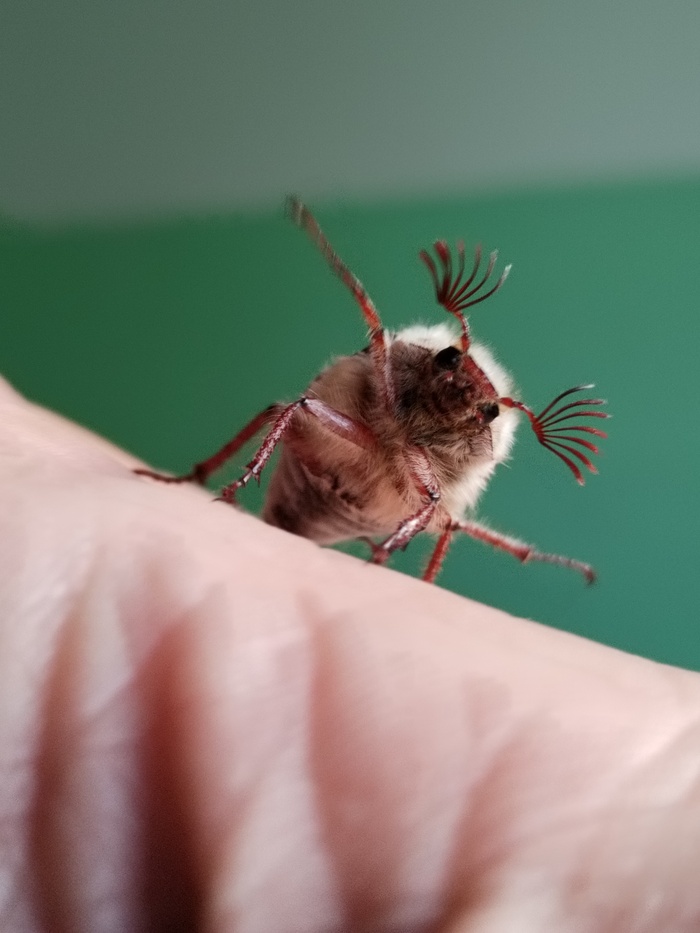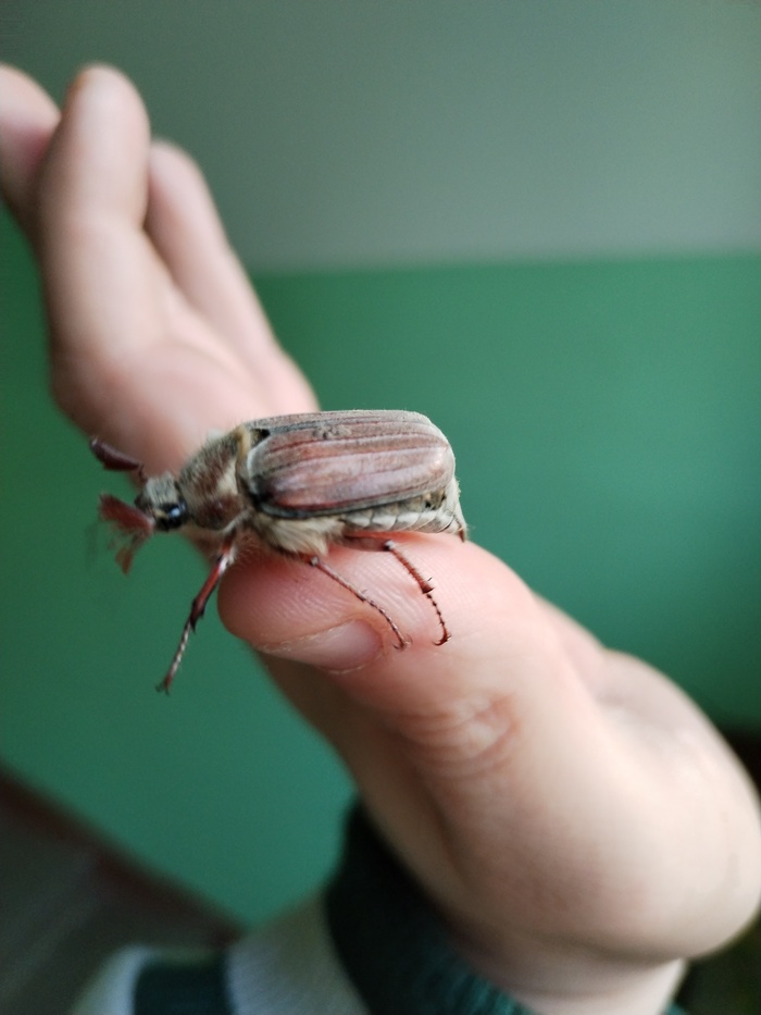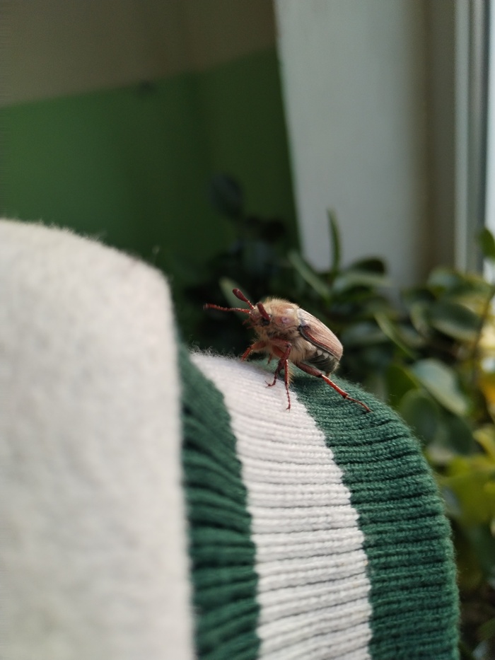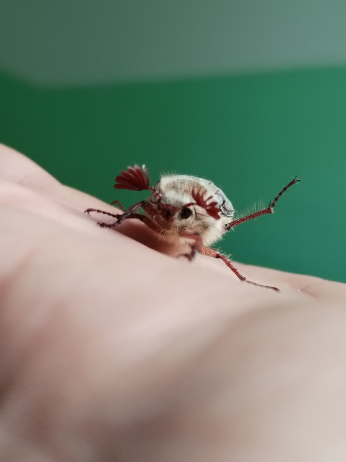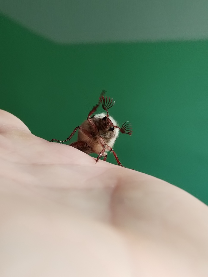 Герой сегодняшнего поста - хрущ майский восточный, он же майский жук восточный, он же дикокаштановый хрущ, он же лат. Melolontha hippocastani. В этот раз фотоохота, как я и рассчитывал, благодаря открытым окнам, состоялась в подъезде моего дома. И хотя не пришлось далеко ходить, но попотеть это целеустремлённое членистоногое меня всё-таки заставило. Потому что оказалось не так-то просто подловить его в недвижимом состоянии, чтобы фото не было размыто. Однако, в конечном счёте, моя человеческая настойчивость победила неугомонность насекомого. Что же из себя представляет данное животное?