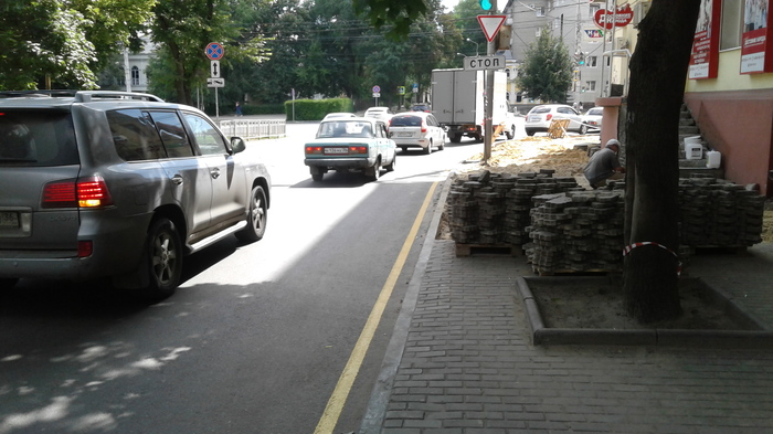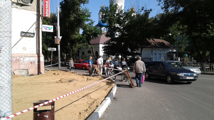 Благоустройство в Воронеже проходит обычно в своей манере. Здесь не думают, что будет с людьми во время, главное, что будет после. Как это обычно здесь происходит, вечером в четверг раскопали, огородили и оставили. То, что людям надо будет ходить по проезжей части, никого не волнует.