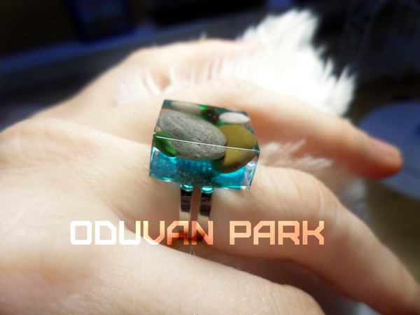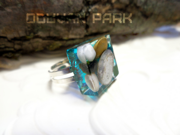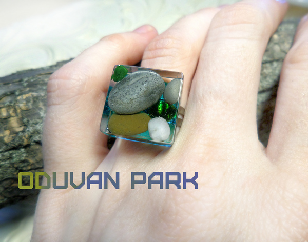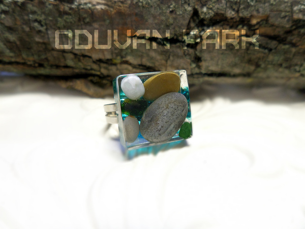 Кольцо с морскими камушками... Да ж кусочек стеклышка, облизанного морскими волнами, нашла...
