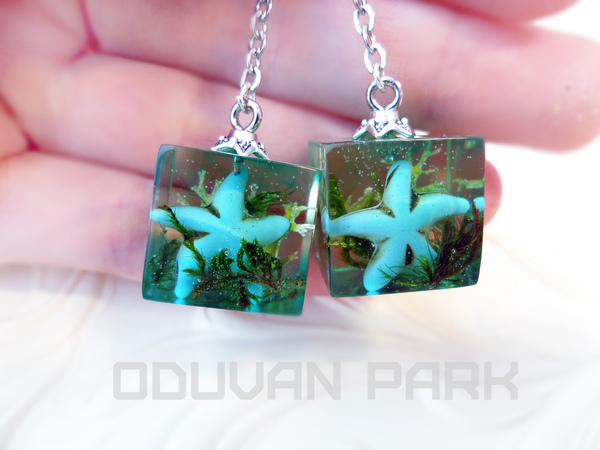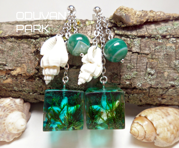 Эти серьги с лесным мхом и бусиной в виде звезды, но то ж оригинально смотрятся..