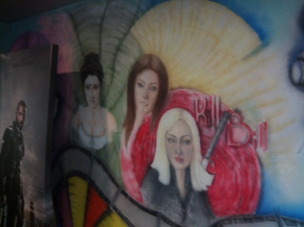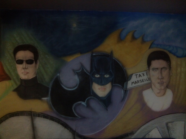 Не только афиши рисуют в ручную ,но и стены оформляют .