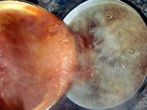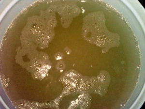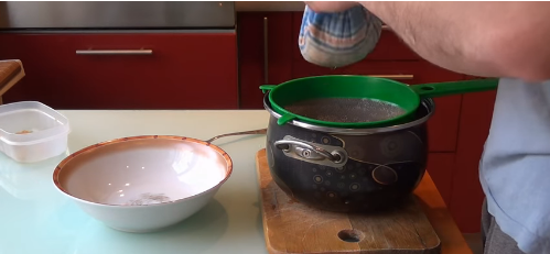 Всего необходимо 3 заливки. При первых двух вода получается мутная, а в третий раз она должна быть более прозрачной и чистой.