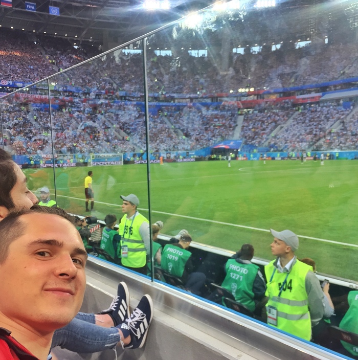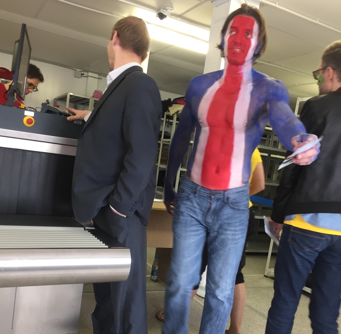 Путина, а некоторые настолько разукрашивали лицо, что их не пускали из за того, что было невозможно сопоставить их с фотографией в системе. Люди винили нас, что мы, не приняв у них на хранение водку, вынудили их напиться и теперь они ничего не поймут на матче. Люди везли огромные барабаны и флаги, размером с площадь квартиры, но это, тоже, конечно, запрещено к проносу по правилам Фифа.