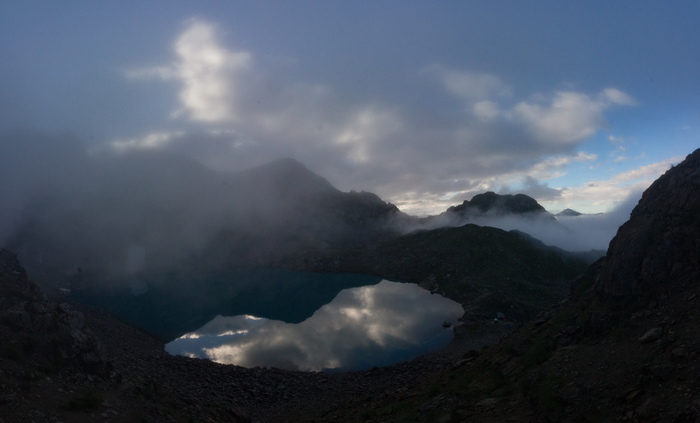 В этот раз было всё, что быть в горах должно: туман, облака, проливной дождь, солнце и всё это с периодичностью в пол часа.