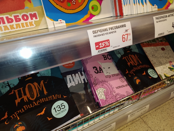 Ну во-первых, просто тупое исполнение своей работы мерчендайзерами (когда ты прочитал только одно слово на обложке "Раскраска" и, соответственно, это должно пойти в отдел с раскрасками).