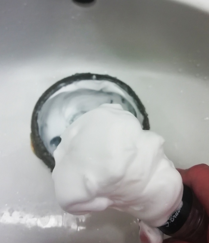 Пена взбивается шикарная, высокая, жирная, плотная, на лицо ложится слоями как штукатурка
