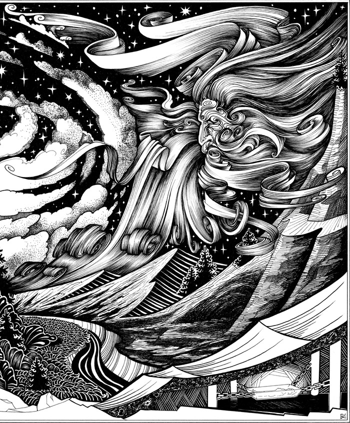 Данная работа выполнена черными линерами разной толщины на бумаге. Все изображения кликабельны.