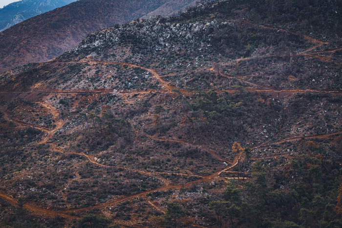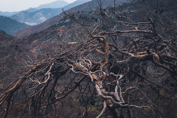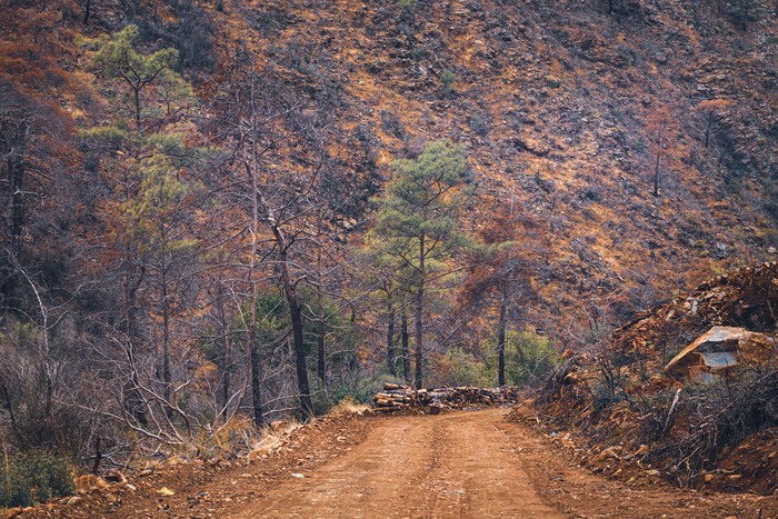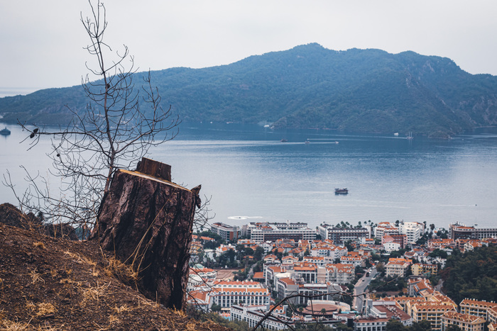 Вдоль дорог заботливо уложены поленницы - остатки горелого леса. Вывозят их весьма неспешно. Но оно и неудивительно - такие "дрова" только на дрова и можно пустить, а в южной Турции в целом тепло.