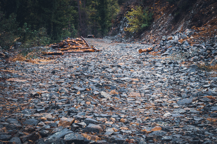 Мчусь по ущелью вдоль пересохшей речки. Почти на всём пути основное покрытие - ссохшаяся глина, но встречаются и секции из битого скальника. В этот раз повезло и я пролетаю его с горки.