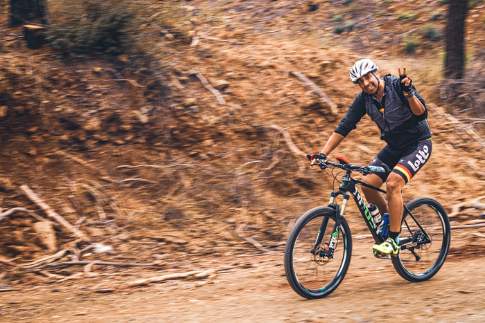 По пути встречаю пару местных катальцев, которые бороздят местные горы на нормальной технике - не в пример мне, истязающему простенький найнер. Завистливо облизываюсь на Shimano XT / Fox - у меня-то Сантур вместо вилки и внятной амортизации мне тут ой, как не хватает ... Не смотря на то, что ребята катосят по асфальту - сразу видно, что велы заряжены на местные скалы - резина предельно злая и широкая.