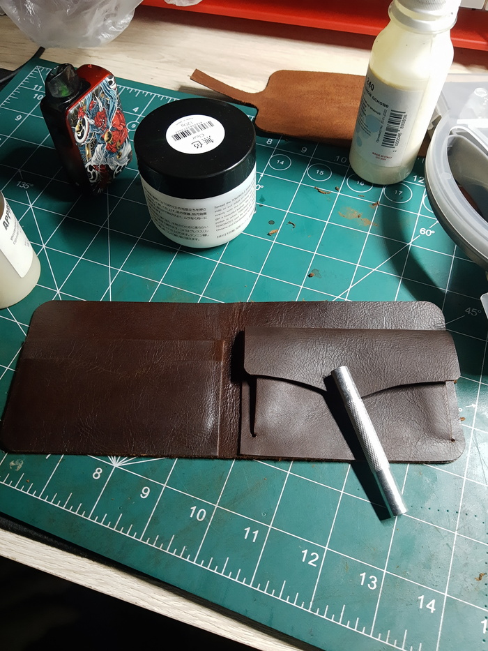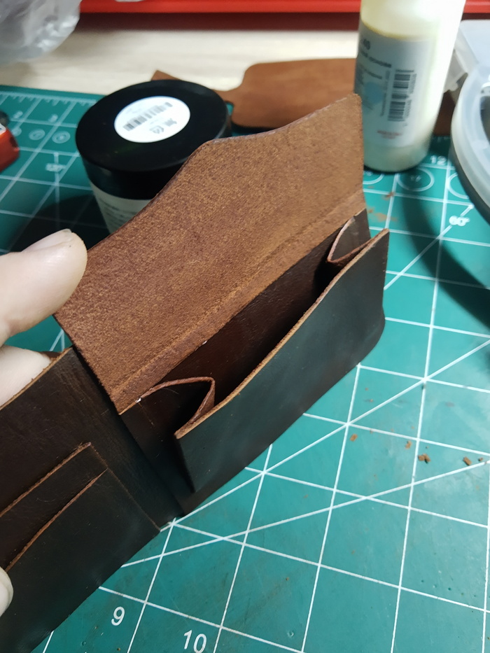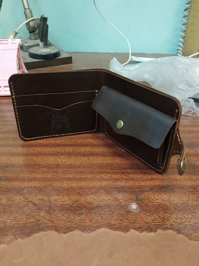 Человек попросил внести некоторые изменения и вместо кармашков для карточек сделать монетницу.