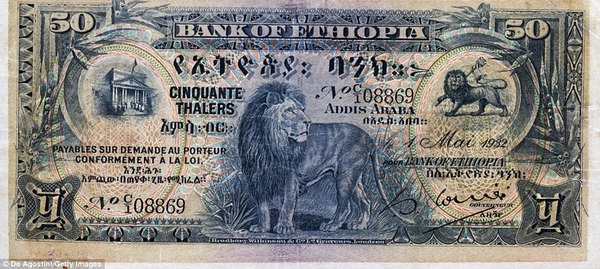 На банкноте номиналом 50 эфиопских талеров 1932 года изображены два льва.