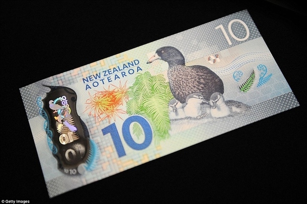 Банкнота номиналом 10 новозеландских долларов нового образца. На купюре, защищённой голограммой, изображена утка со своим выводком.