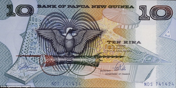Банкнота номиналом 10 кина, которая была в обращении в Папуа – Новой Гвинее в 1980-х годах.