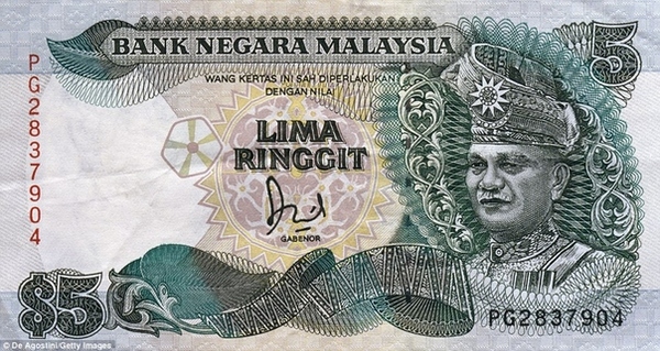 На купюре номиналом 5 малайзийских ринггитов изображен портрет первого верховного правителя Малайзии Туанку Абдул Рахмана.