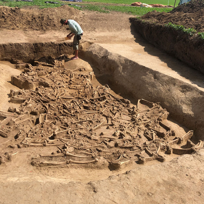 Их хорошо сохранившиеся скелеты были перемешаны. За исключением маленького ребенка, у всех отсутствовали головы. Как, когда и почему головы этих людей были отделены от тела, являются центральными вопросами для будущих исследований.