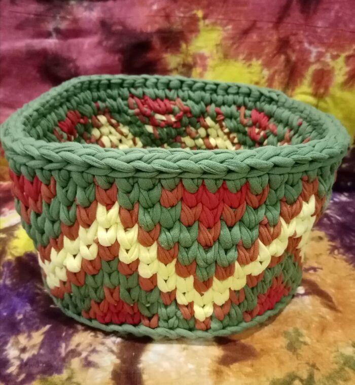 Дальше замечательный вязаный органайзер-корзинка. Обожаю такие вещи, куда можно что-то уложить, спрятать, засунуть:) Очень красивый, большой и, что самое главное, связан золотыми руками дарительницы!