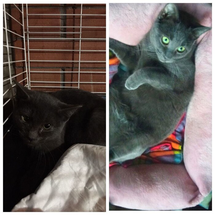 Было-стало от источника моих проблем (это мать Луны, ее сестры, Полосатки и Деми). После стерилизации мне было так жалко ее отпускать обратно, так как она была полулысая и очень больная (еще пришлось ей удалять гнилые зубы). За год прогресс только в том, что она не убегает под шкаф, когда я пошевелюсь. Я вряд ли смогу найти ей дом, так что будет жить у меня, сколько ей надо. Учитывая то, сколько ей пришлось пережить, наверное, не долго. Домашняя кличка Призрак. Как только я приезжаю домой, то постоянно вижу ее на окне. Как только захожу домой, ее и след простыл.