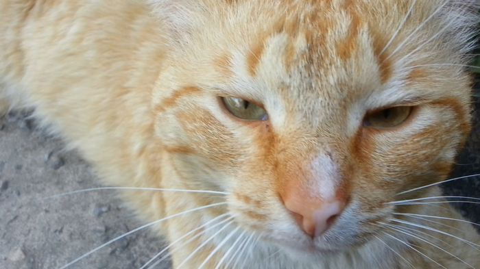 Это соседский кот Рыжик. Личность легендарная. Ему уже лет восемь если не больше и в нашем дворе он главный.