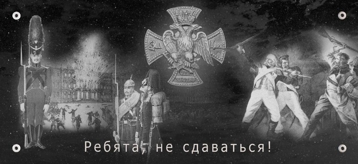Первая и единственная уцелевшая надпись «Родному полку» дополнилась табличкой «Ребята, не сдаваться!» Она отсылает к подвигу самого Леонтия Коренного и других гвардейцев, ценою своих жизней защищавших Зимний дворец во время теракта 17 февраля 1880 года.